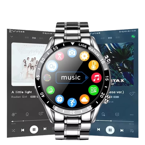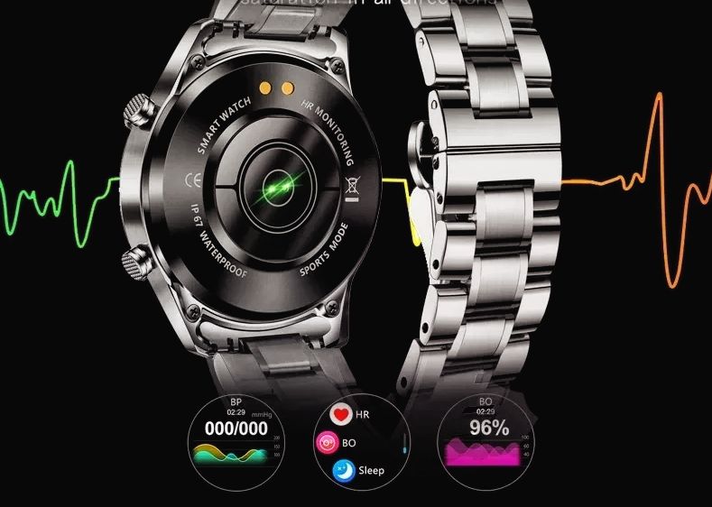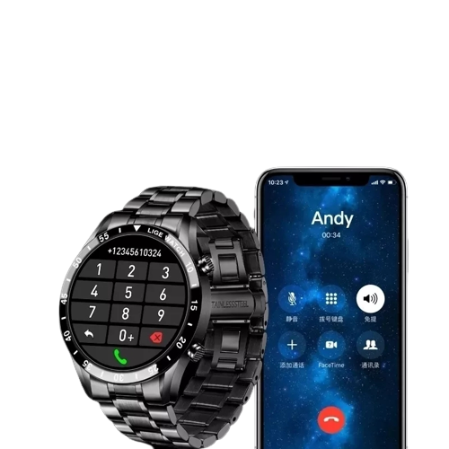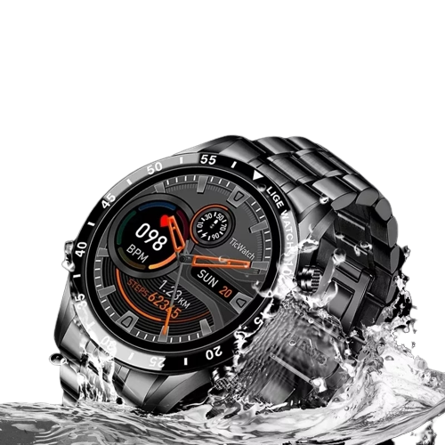 Círculo Completo Tela de Toque Aço Bluetooth Chamadas Relógio Inteligente à Prova ďagua Esporte Atividade Fitness.