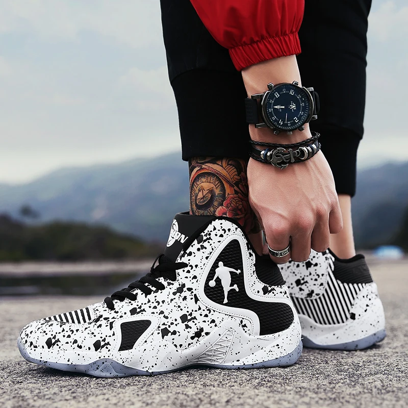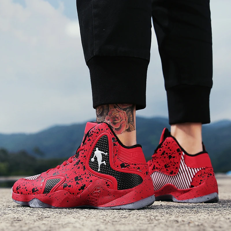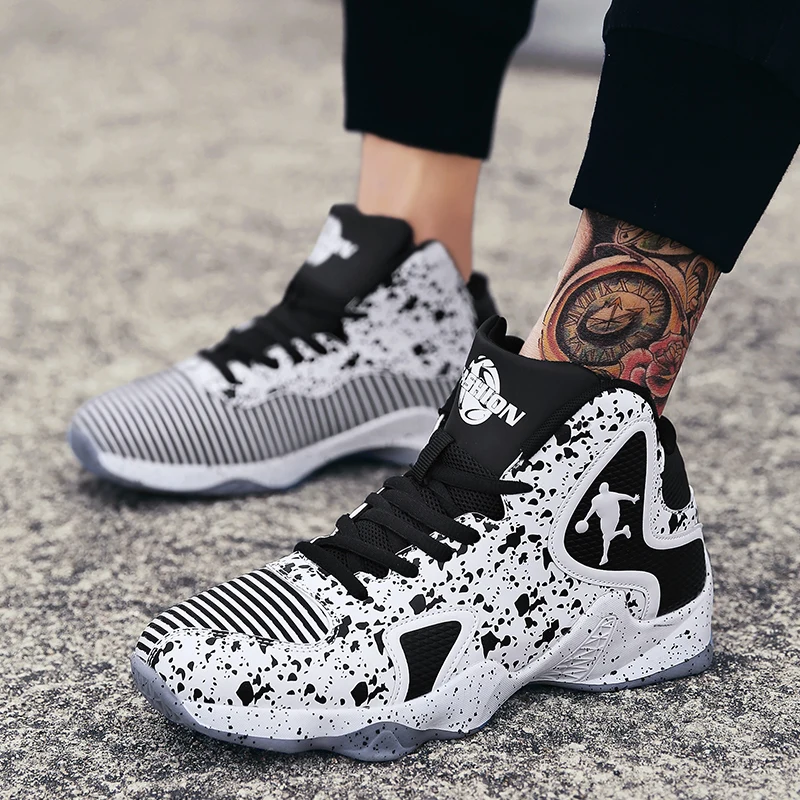 Tênis de basquete ventilado, confortável com amortecimento. Treinamento esportivo com sola de borracha.